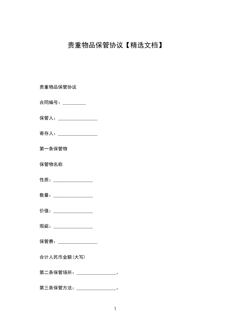 第五条 保管物中(是/否)有货币、有价证券或者其他贵重物品,具体如下:_________________。