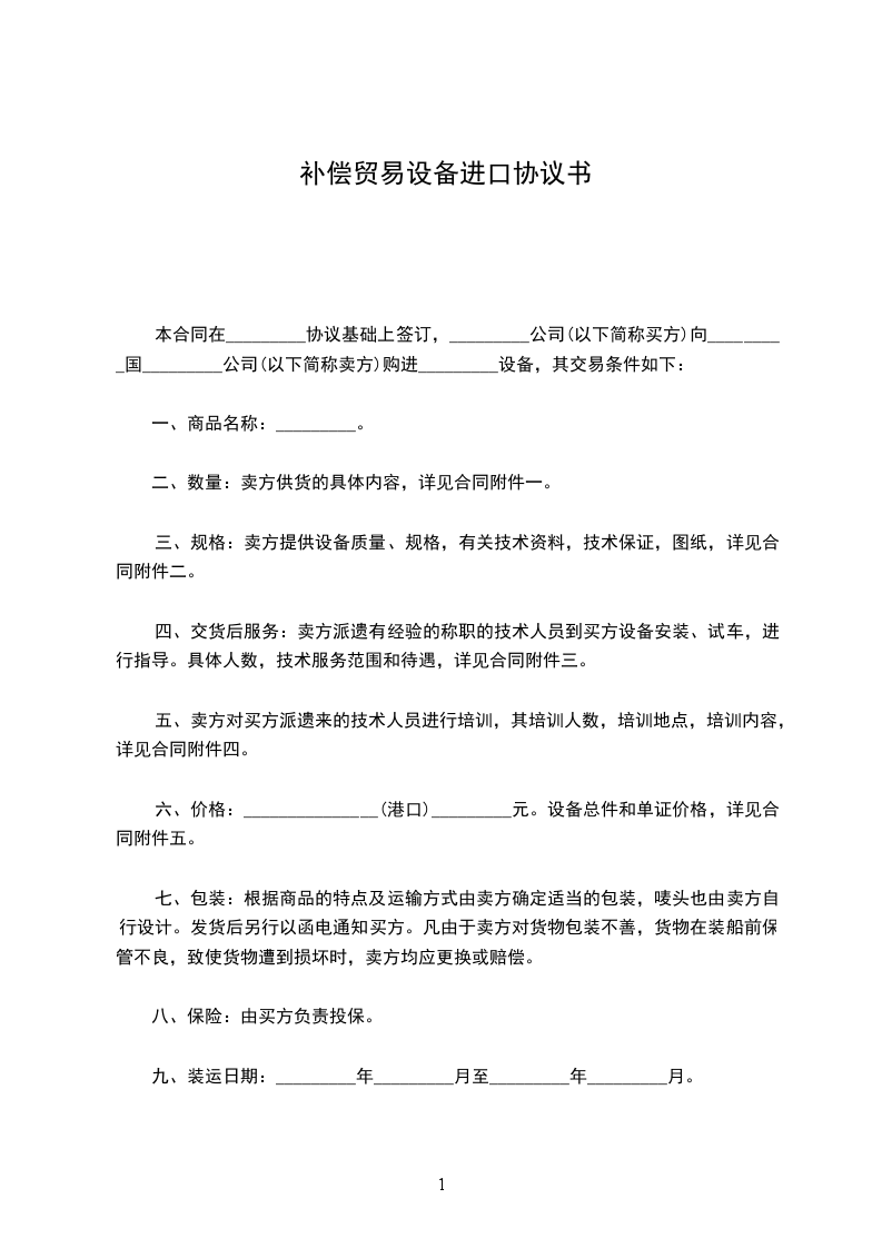 九、装运日期:_________年_________月至_________年_________月。