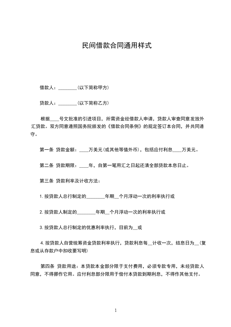 一、借款金额: 元(大写:人民币 )。
