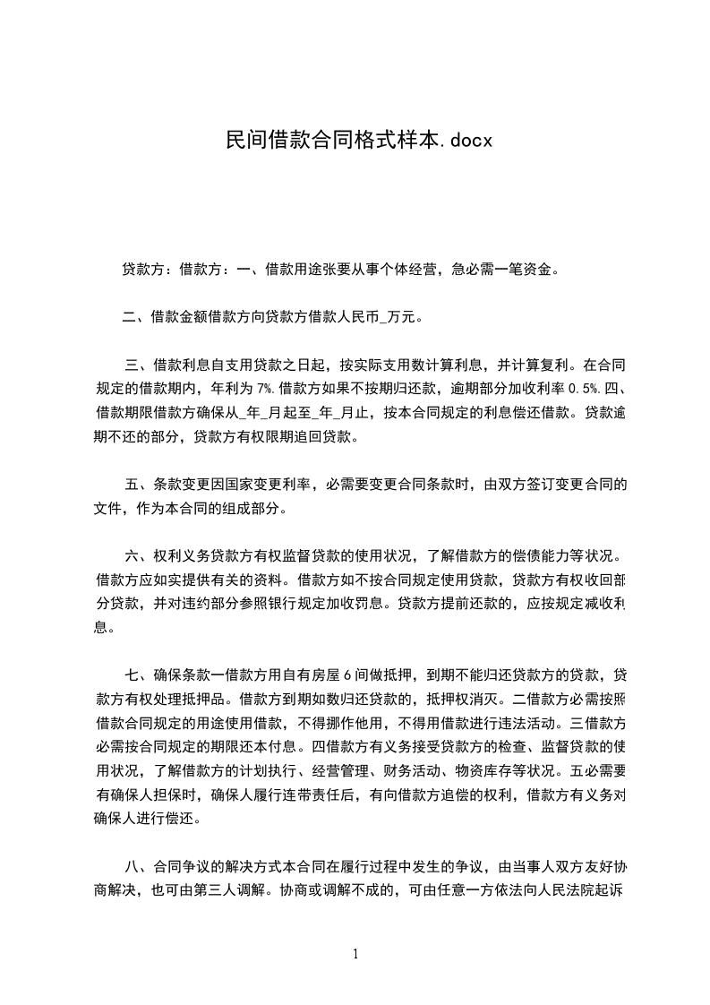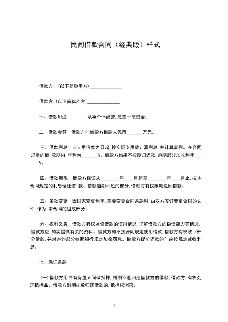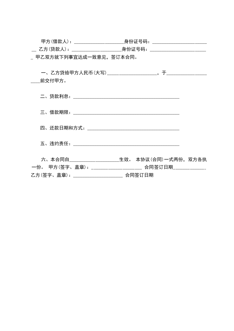 借款人: (下简称甲方) 出借人: (下简称乙方)