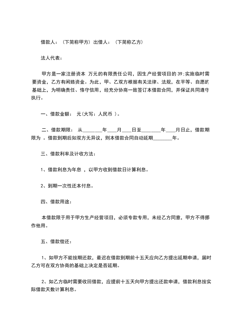 2、如乙方临时需要收回借款,应提前十五天向甲方提出还款申请,借款利息按实际借款天数计算利息。