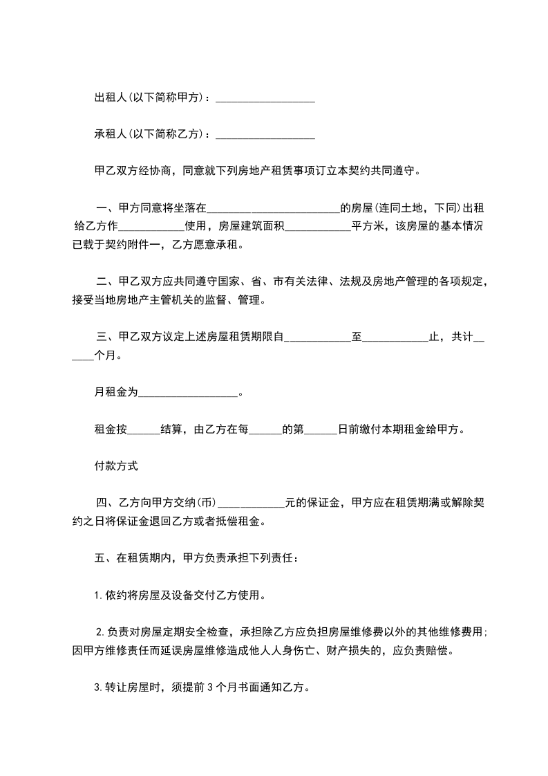 三、甲乙双方议定上述房屋租赁期限自____________至____________止,共计______个月。