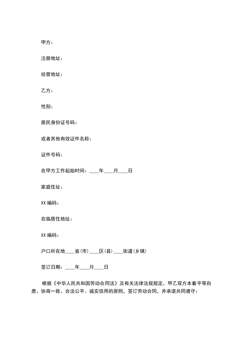 根据《中华人民共和国劳动合同法》及有关法律法规规定,甲乙双方本着平等自愿、协商一致、合法公平、诚实信用的原则,签订劳动合同,并承诺共同遵守: