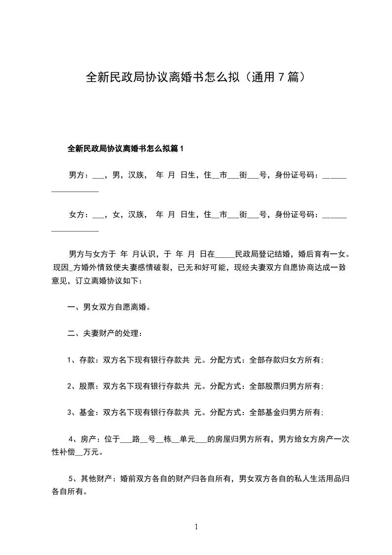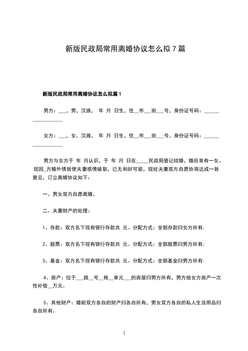 新民政局离婚协议怎么拟篇1