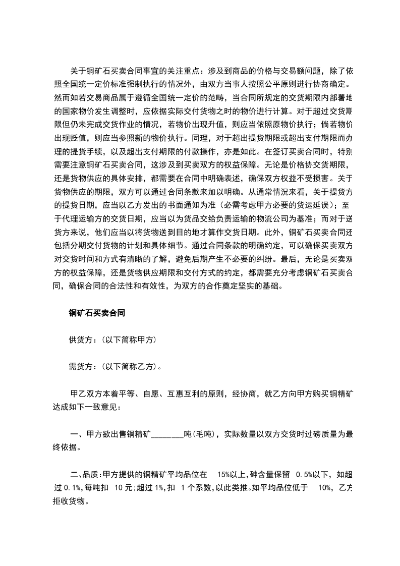 一、甲方欲出售铜精矿________吨(毛吨),实际数量以双方交货时过磅质量为最终依据。
