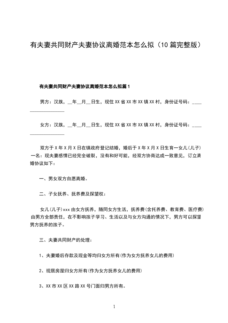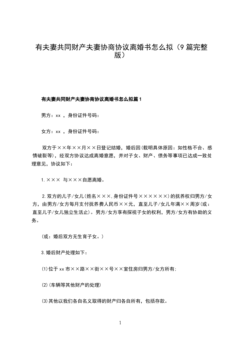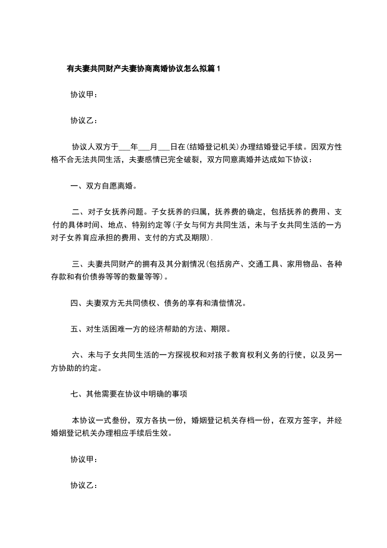 无共同债权夫妻协议离婚书怎么拟篇4