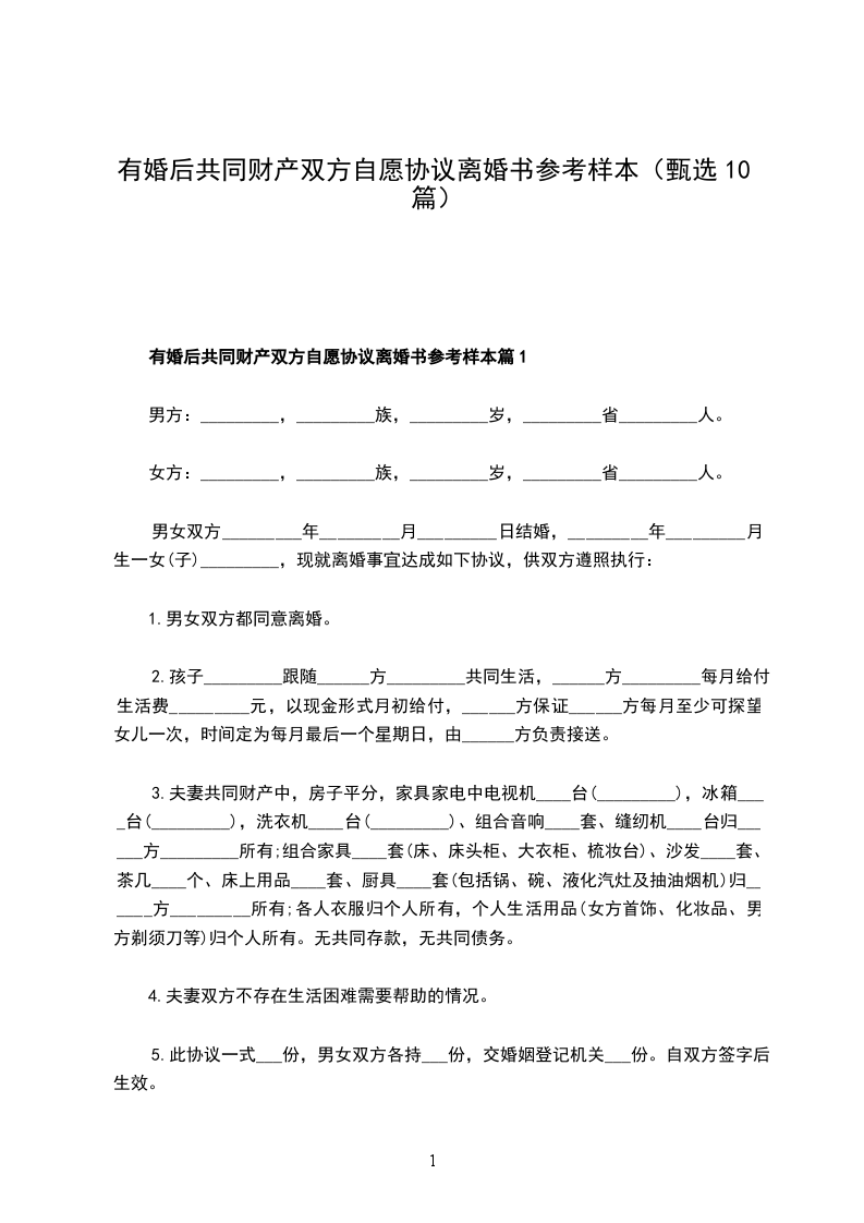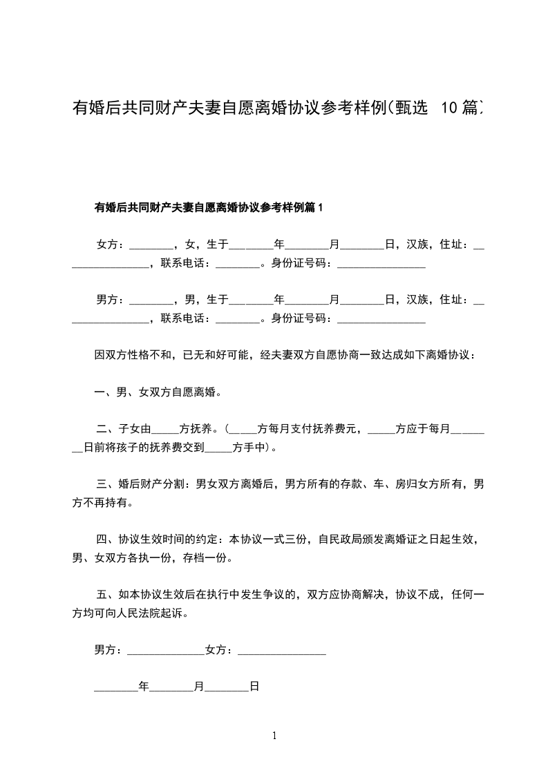 一、________与________自愿离婚,今后各自婚姻互不干涉。