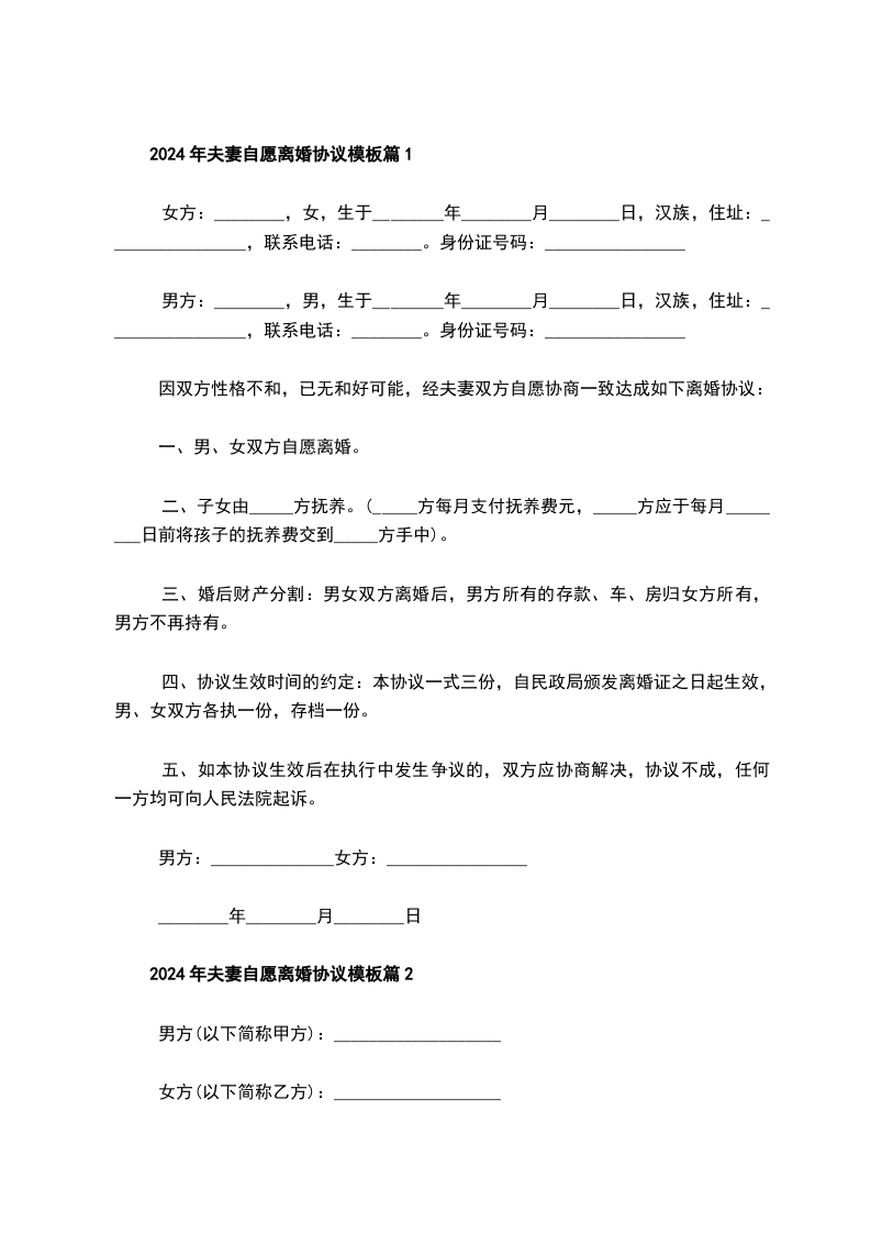 女方:___,女,汉族, 年 月 日生,住__市___街___号,身份证号码:__________________