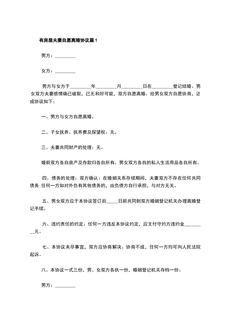 本协议一式三份,自签订之日起生效,男、女双方各执一份,婚姻登记机关存档一份。