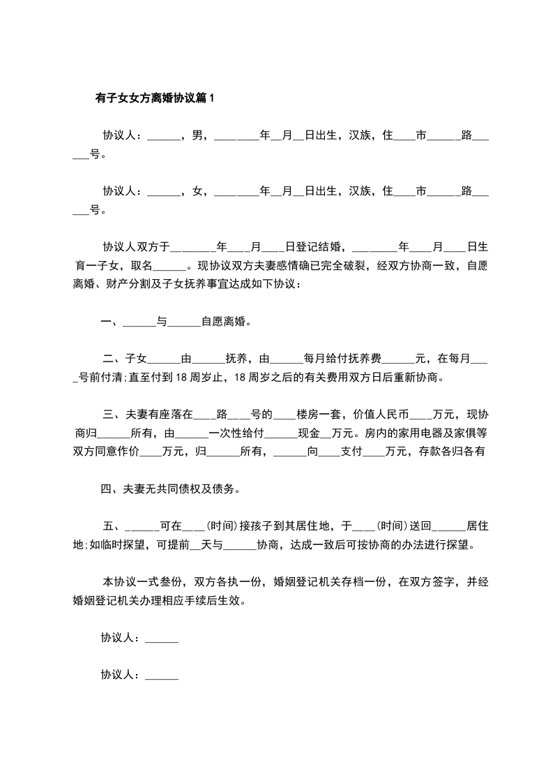 乙方(女方):_________,女,______年____月____日出生,汉族,住________市_____________路_____________________,身份证号:______________________