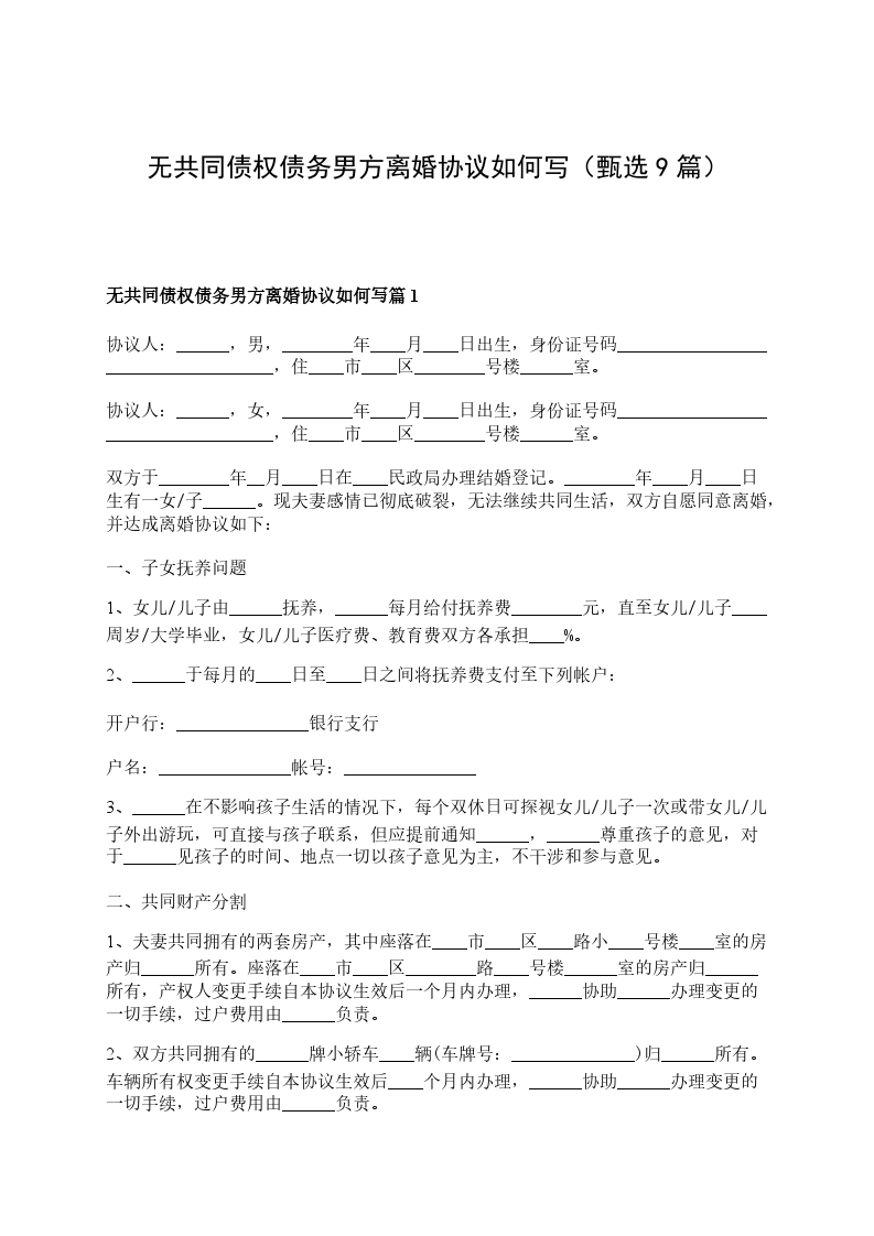 乙方:(男方):_______________,男,汉族,生于_____年__月__日,住________________________________