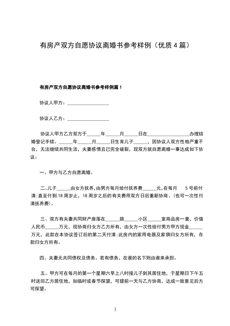 夫妻共有房屋内的家用电器及家具等,双方同意作价______万元,归男方/女方所有,取得的一方给予另一方经济补偿人民币______元,在本自愿离婚协议书样本签订之日起__内付清。