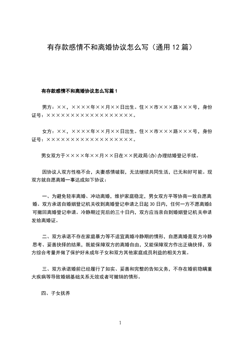 有存款感情不和离婚协议怎么写篇12