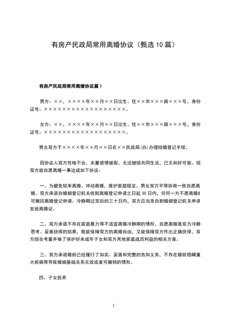 2、本协议一式三份,男女双方各执一份,婚姻登记机关存档一份。