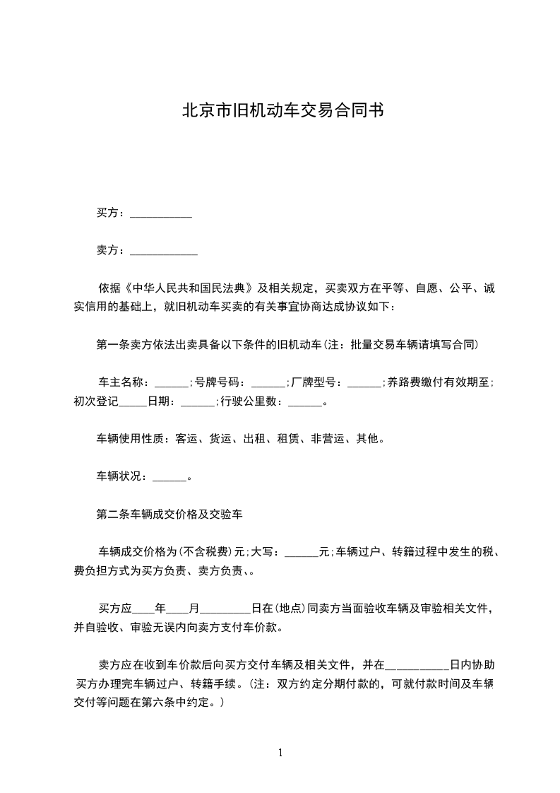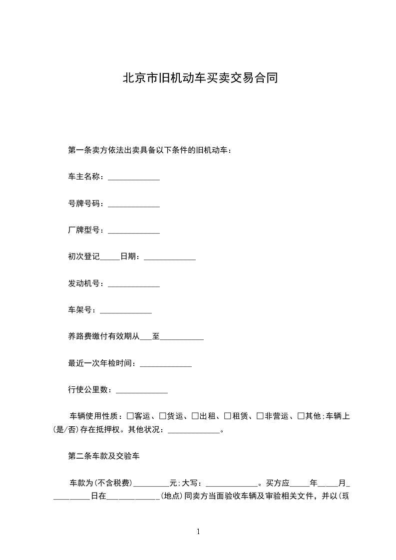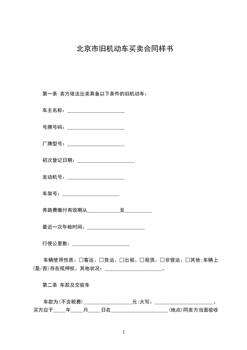 第一条 卖方依法出卖具备以下条件的旧机动车:
