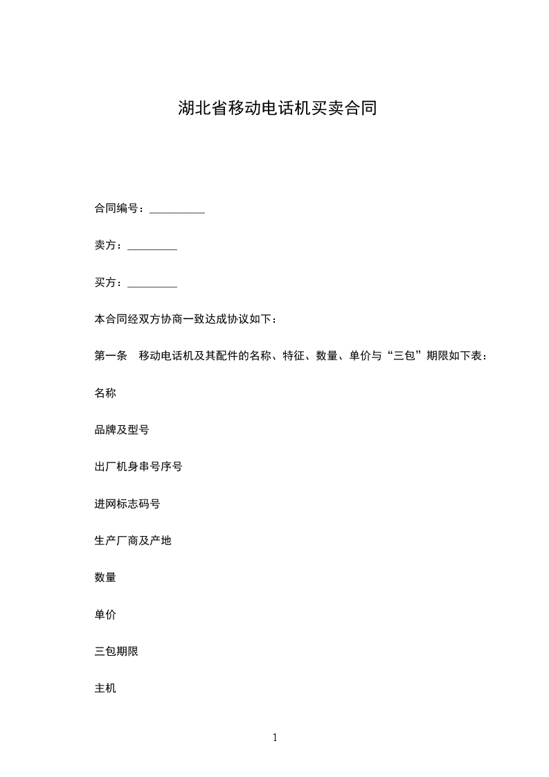 第一条 移动电话机及其配件的名称、特征、数量、单价与“三包”期限如下表: