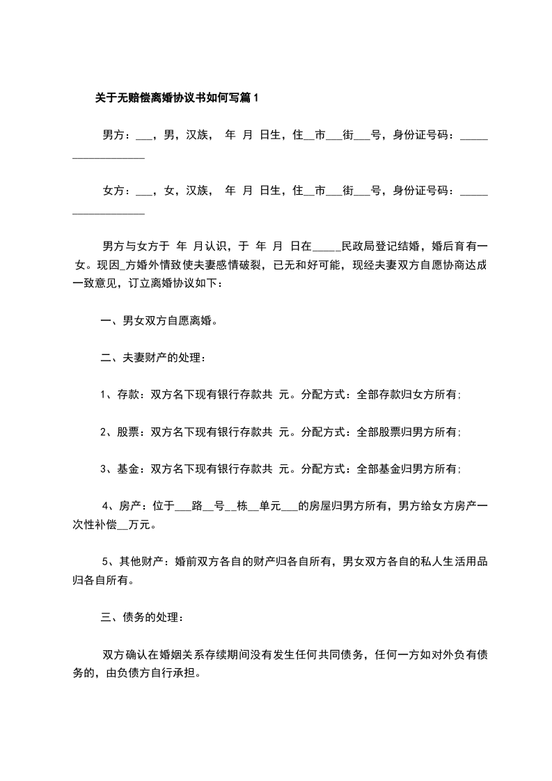 女方:___,女,汉族, 年 月 日生,住__市___街___号,身份证号码:__________________