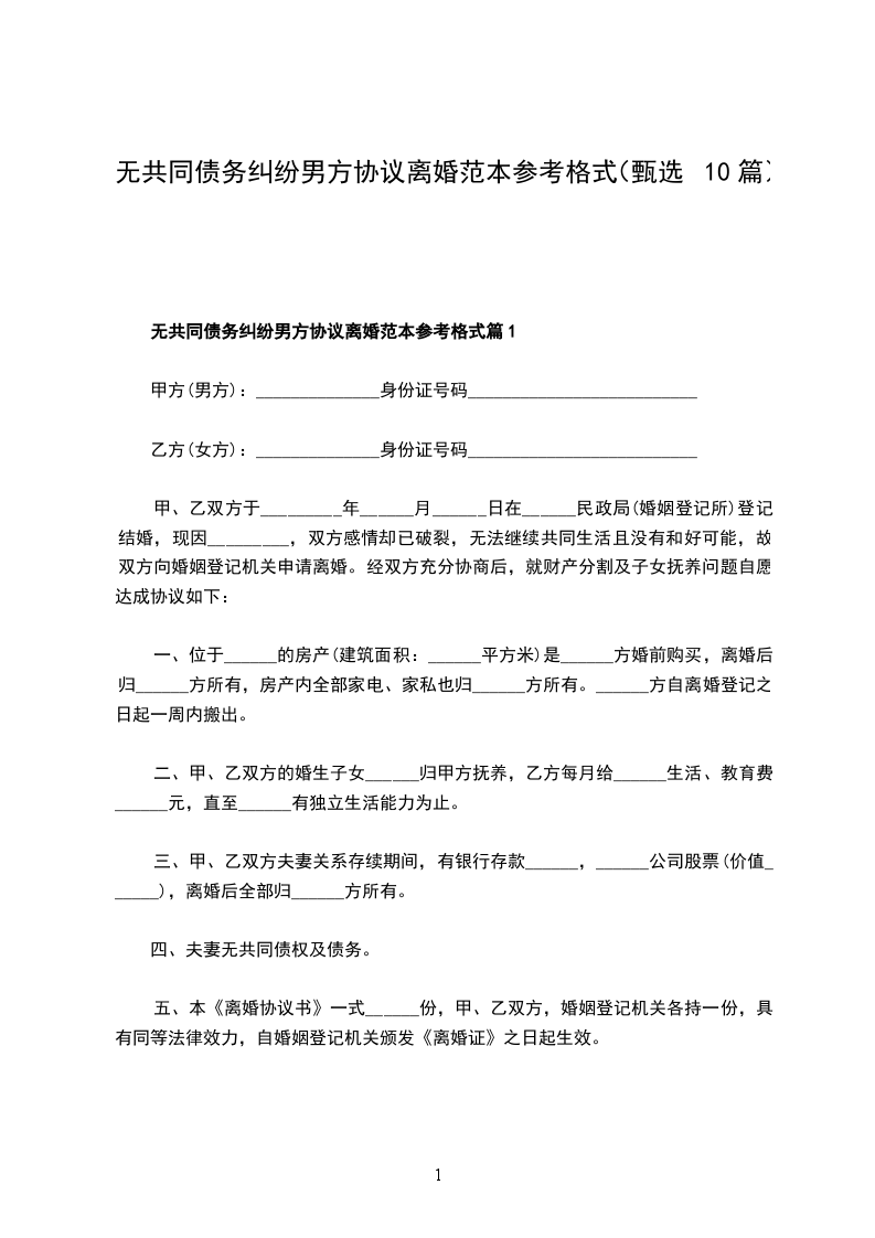 □双方确认在婚姻关系存续期间没有发生任何共同债务,任何一方如对外负有债务的,由负债方自行承担。