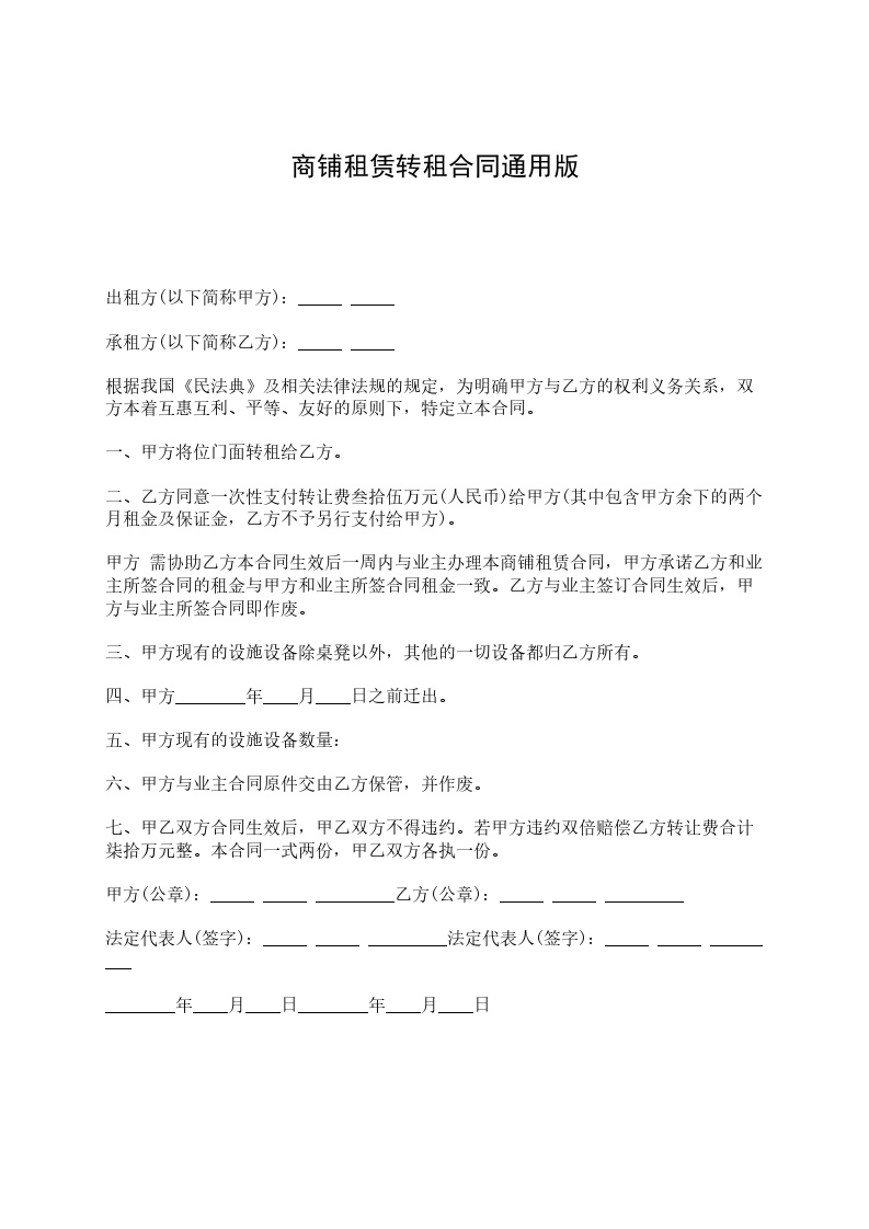 受转租方(乙方):________________身份证号码:________________联系方式:________________