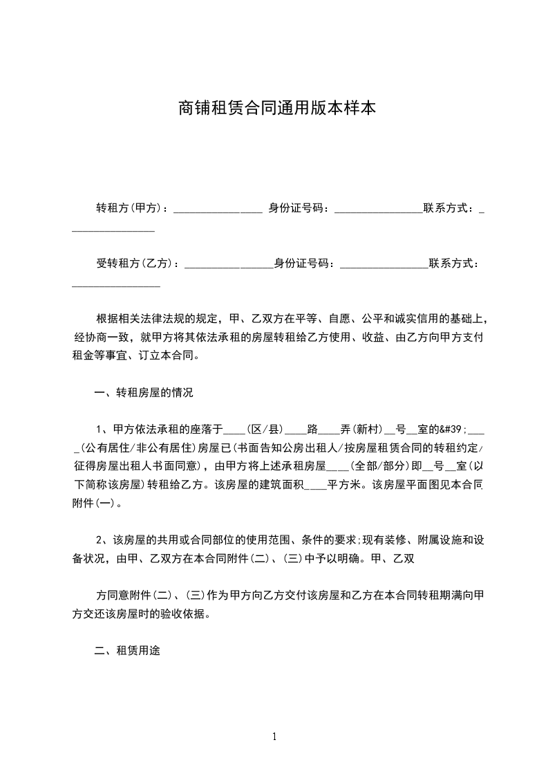 1、甲方依法承租的座落于____(区/县)____路____弄(新村)__号__室的'____(公有居住/非公有居住)房屋已(书面告知公房出租人/按房屋租赁合同的转租约定/征得房屋出租人书面同意),由甲方将上述承租房屋____(全部/部分)即__号__室(以下简称该房屋)转租给乙方。该房屋的建筑面积____平方米。该房屋平面图见本合同附件(一)。