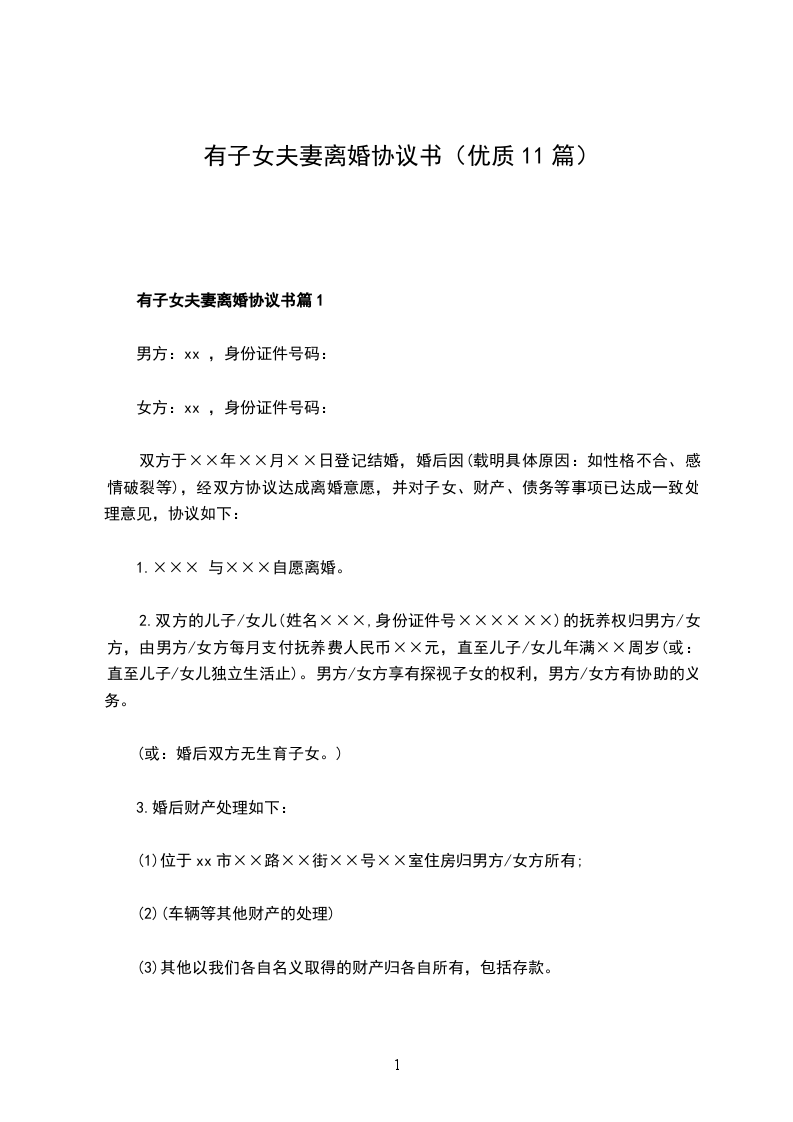 有子女夫妻离婚协议书模板篇1