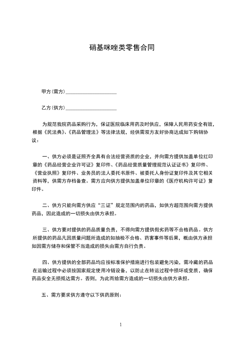 硝基咪唑类买卖合同范本