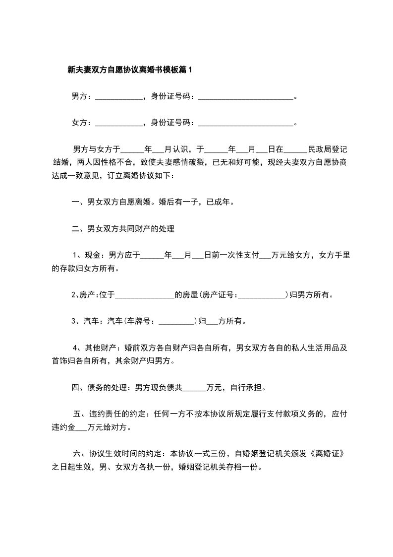 本协议一式三份。男、女双方各执一份,婚姻登记机关存档一份,自婚姻登记机颁发《离婚证》之日起生效。