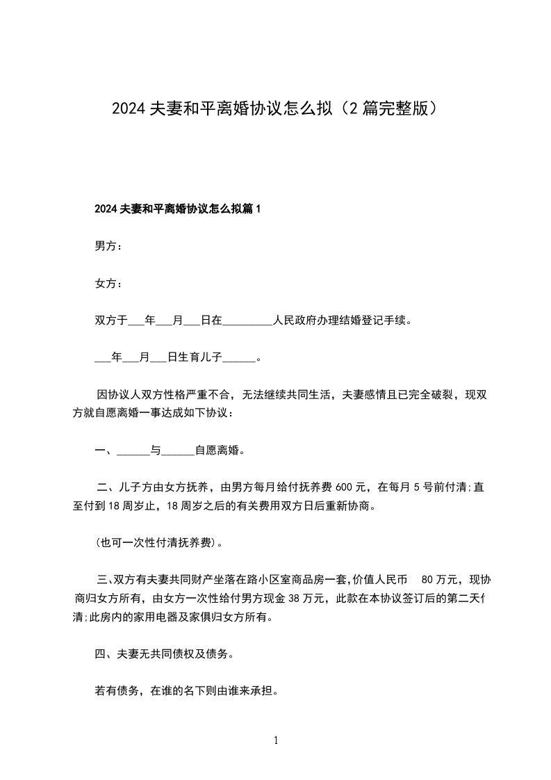 协议人双方于_______年_______月_______日登记结婚,_______年_______月_______日生育一子,取名_______。现协议双方夫妻感情确已完全破裂,经双方协商一致,自愿离婚、财产分割及子女抚养事宜达成如下协议: