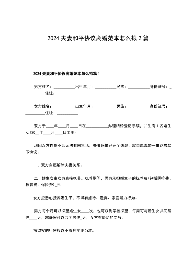 男方______与女方______于______年______月认识,于______年______月______日在______市民政局登记结婚,婚后于______年______月______日生育一儿子,名______。两人因性格不合,致使夫妻感情破裂,已无和好可能,现经夫妻双方自愿协商达成一致意见,订立离婚协议如下: