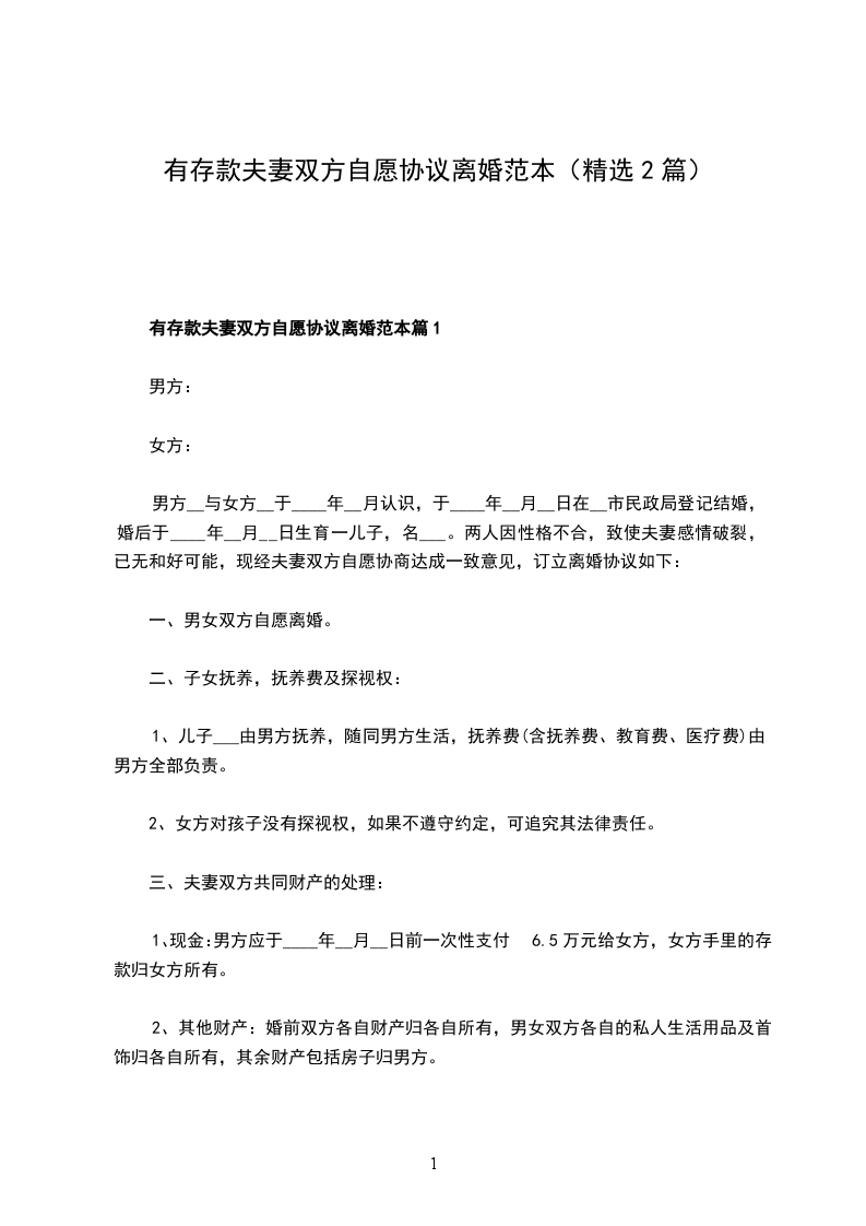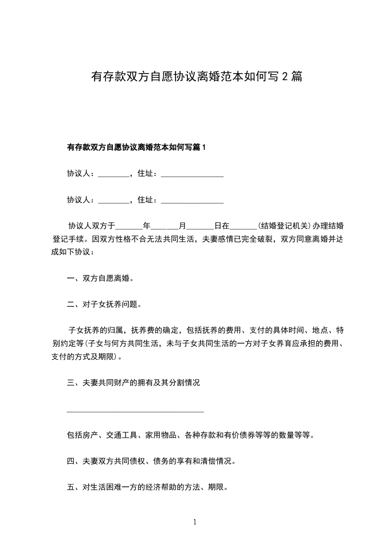 有存款双方自愿离婚协议书格式篇2
