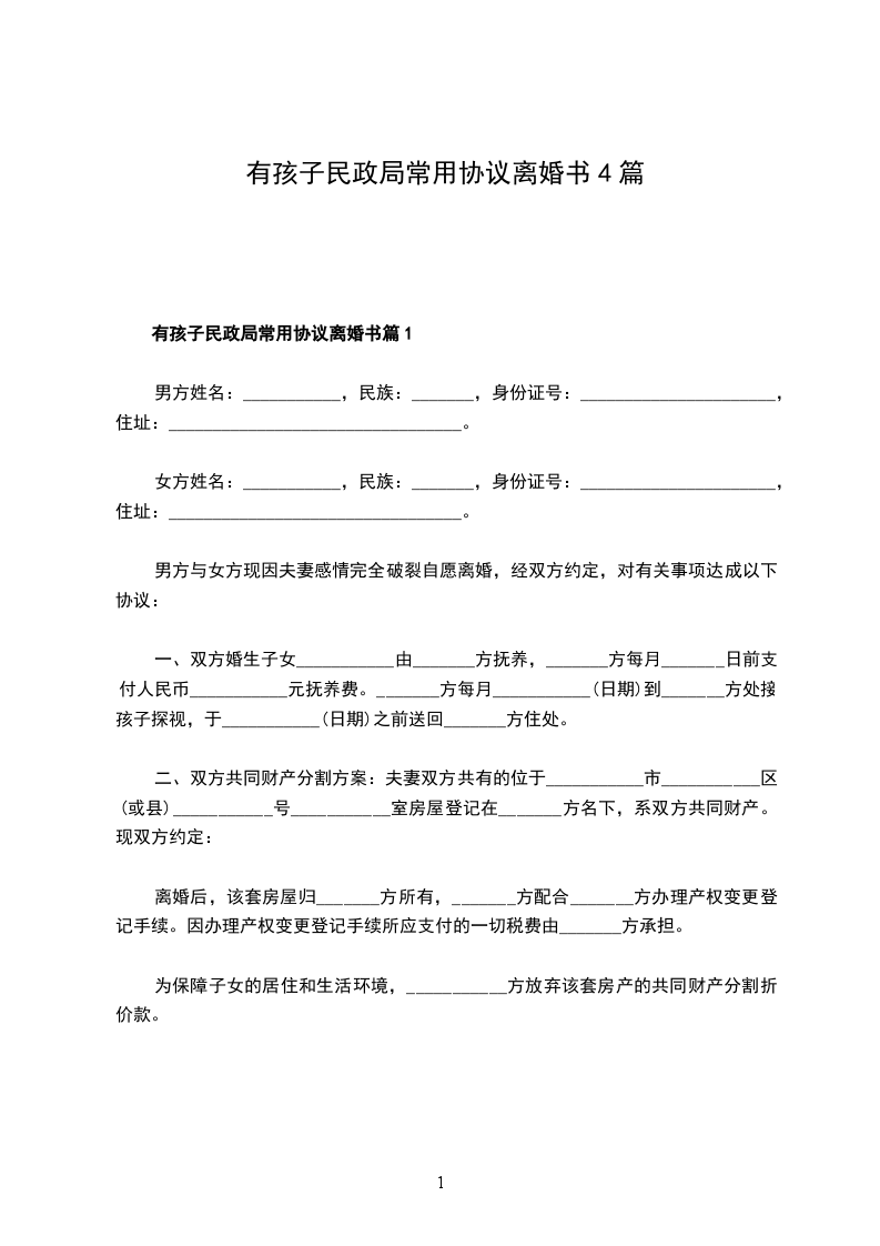 有孩子民政局常用协议离婚书篇4