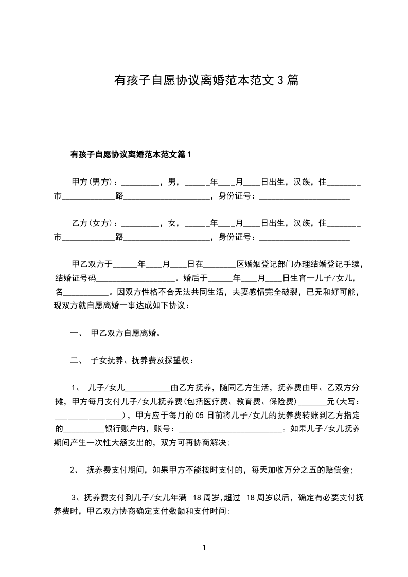 有孩子自愿离婚协议书篇1