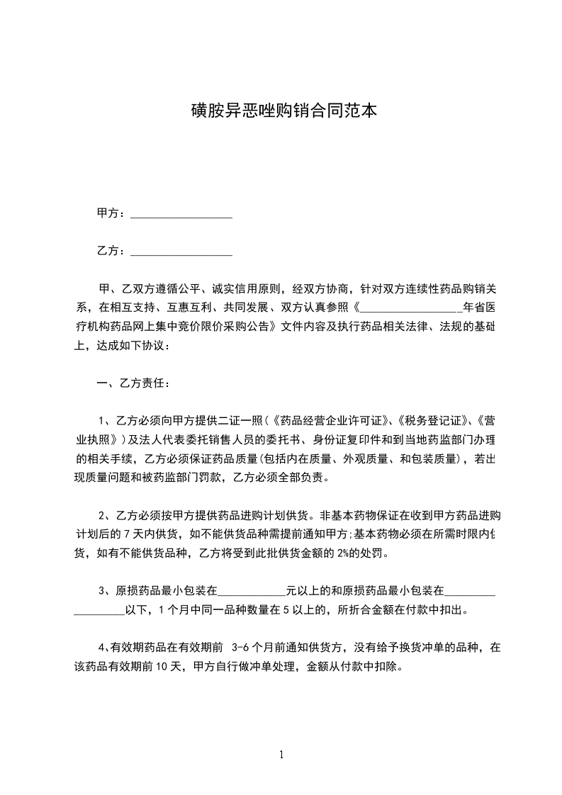 为了依法保护医疗机构(甲方)和药品生产、经营企业和配送企业(乙方)的合法利益,规范购销双方行为,遏制医药购销领域的不正之风,根据国家有关法律和____________省药品集中上网采购有关规定,经双方自愿协商,制定合同如下,以资双方共同遵守。