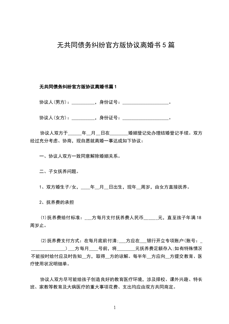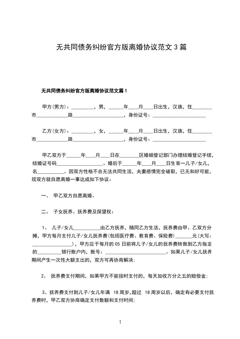 四、夫妻双方无共同债权、债务的享有和清偿情况。