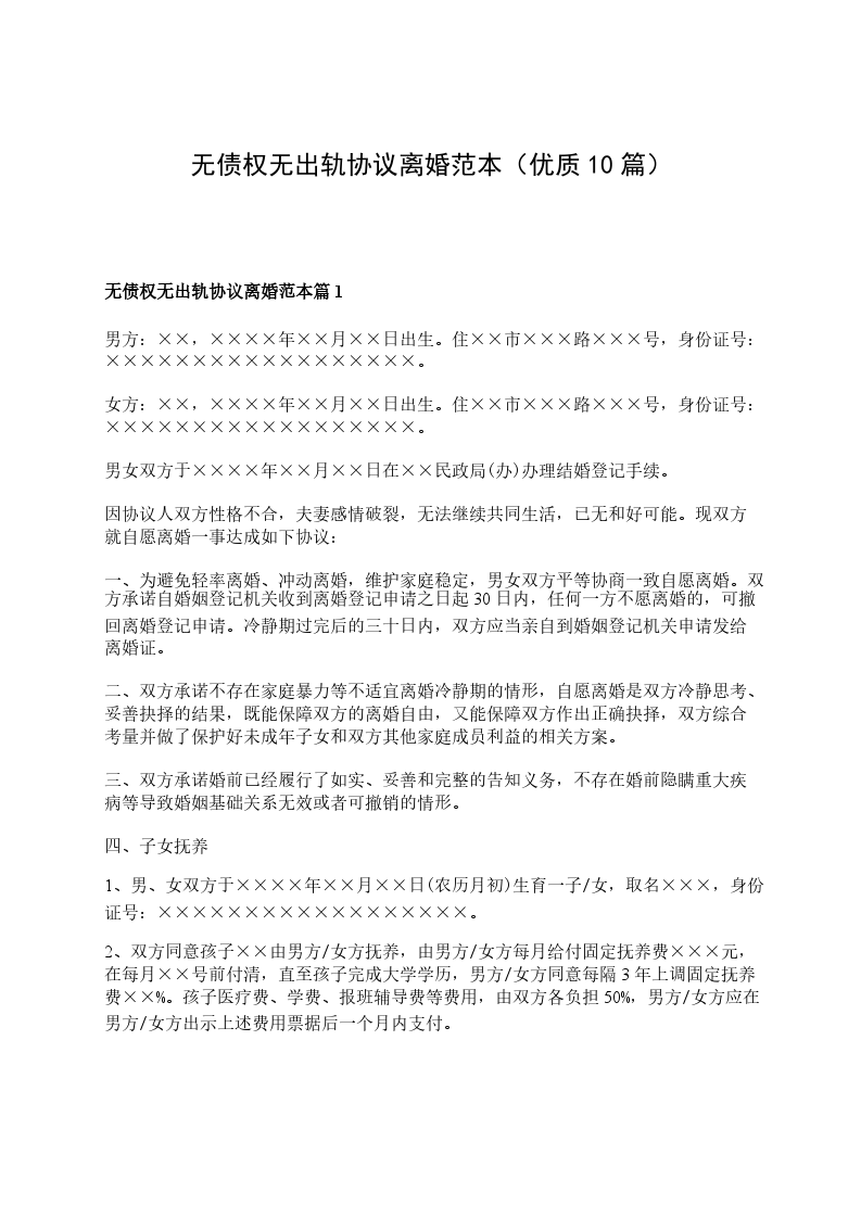无债权无出轨协议离婚范本篇10