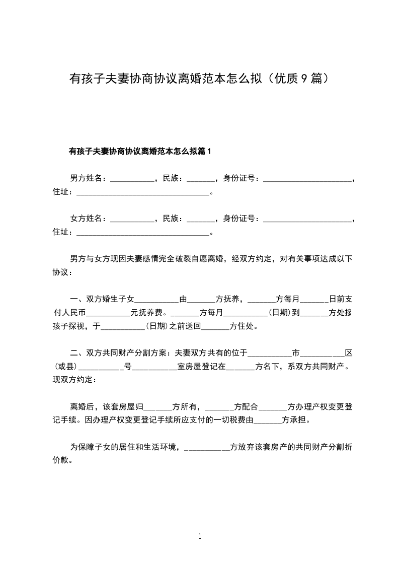 有孩子夫妻协商协议离婚范本怎么拟篇9