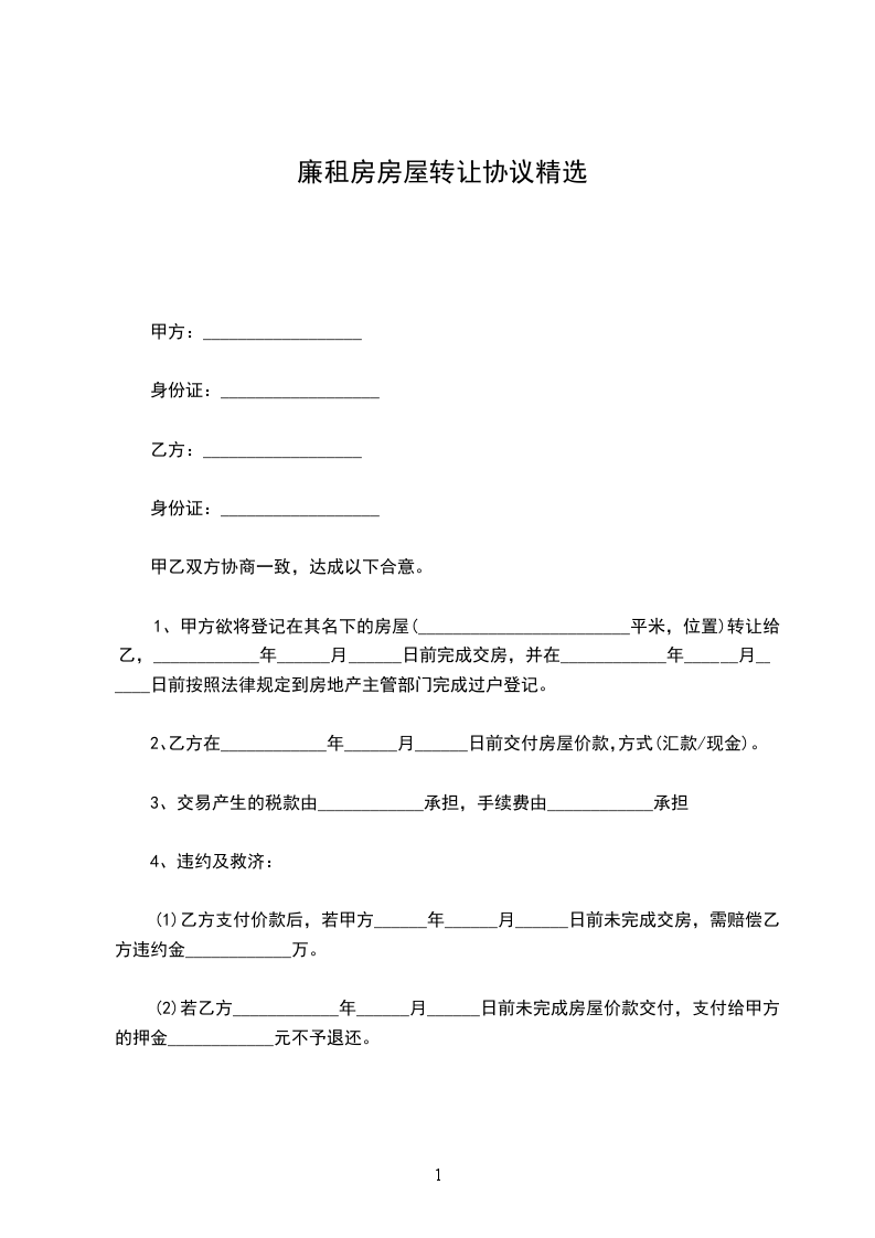 1、甲方欲将登记在其名下的房屋(________________________平米,位置)转让给乙,____________年______月______日前完成交房,并在____________年______月______日前按照法律规定到房地产主管部门完成过户登记。