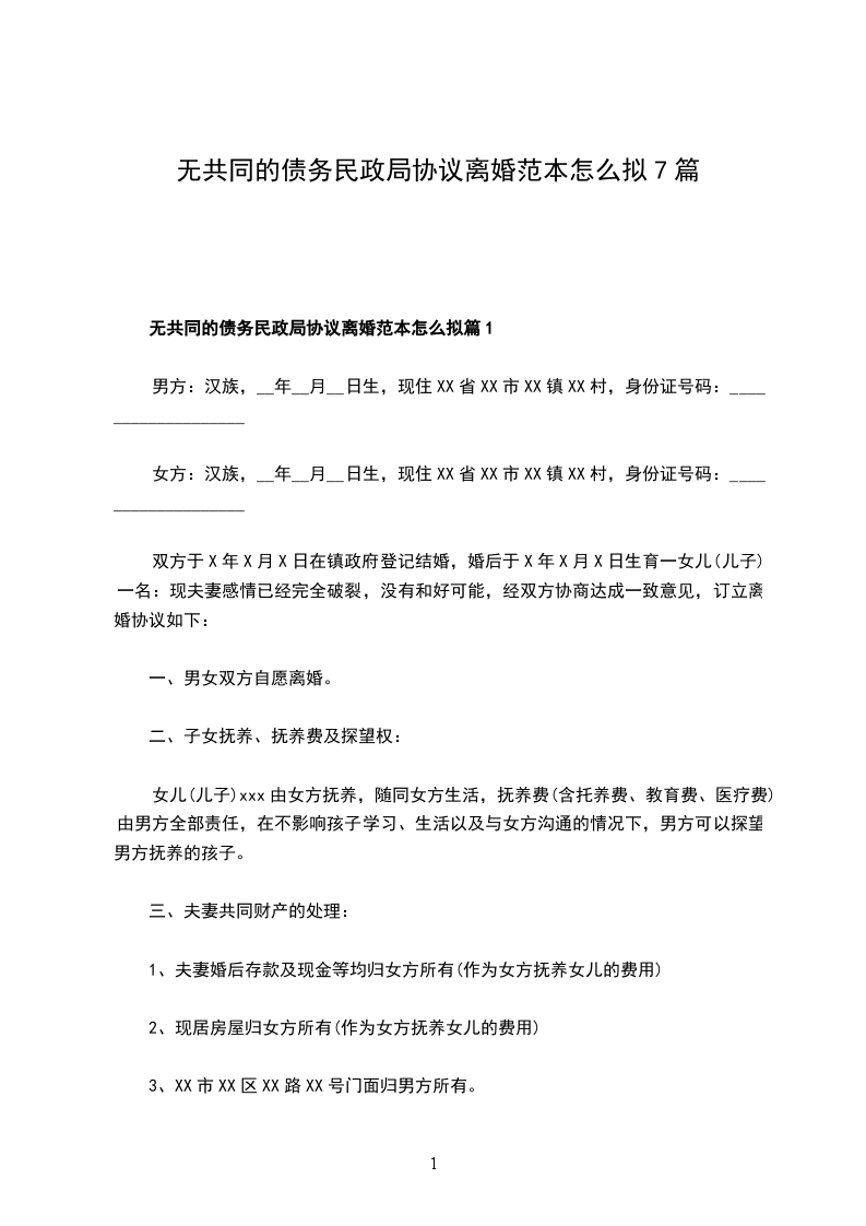 有共同财产民政局离婚协议怎么拟篇1