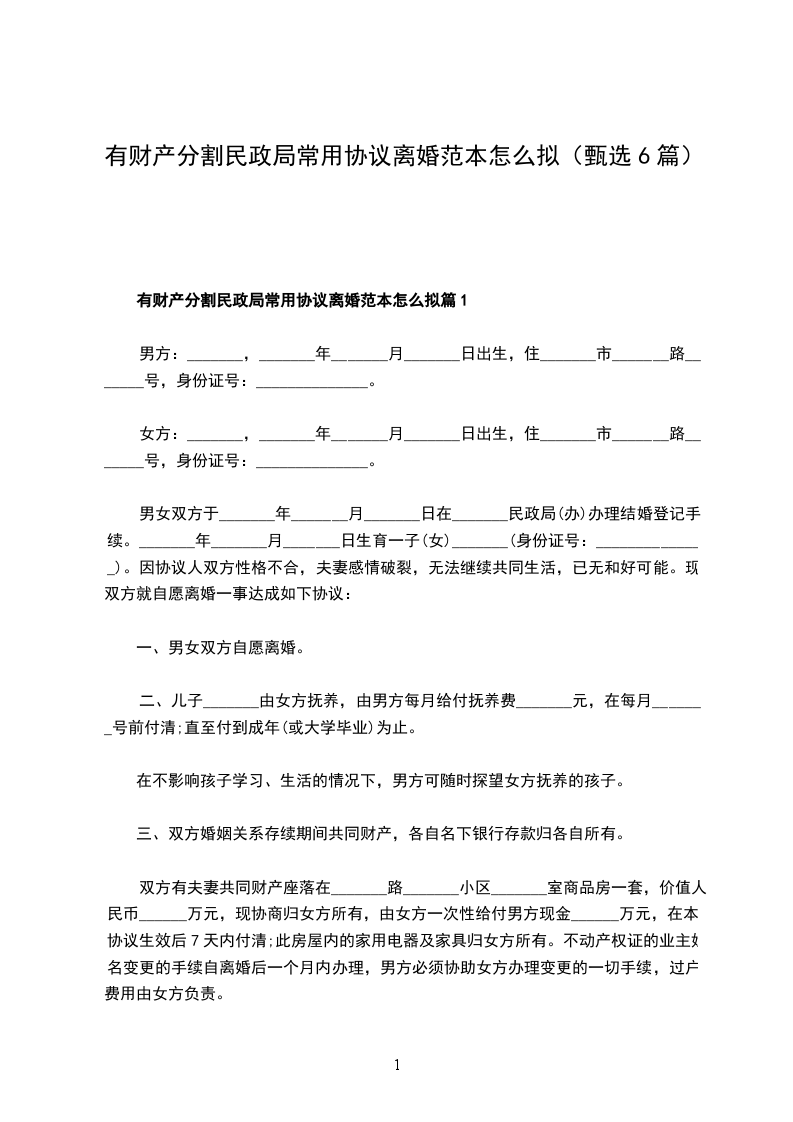 有财产分割离婚协议书怎么拟篇1