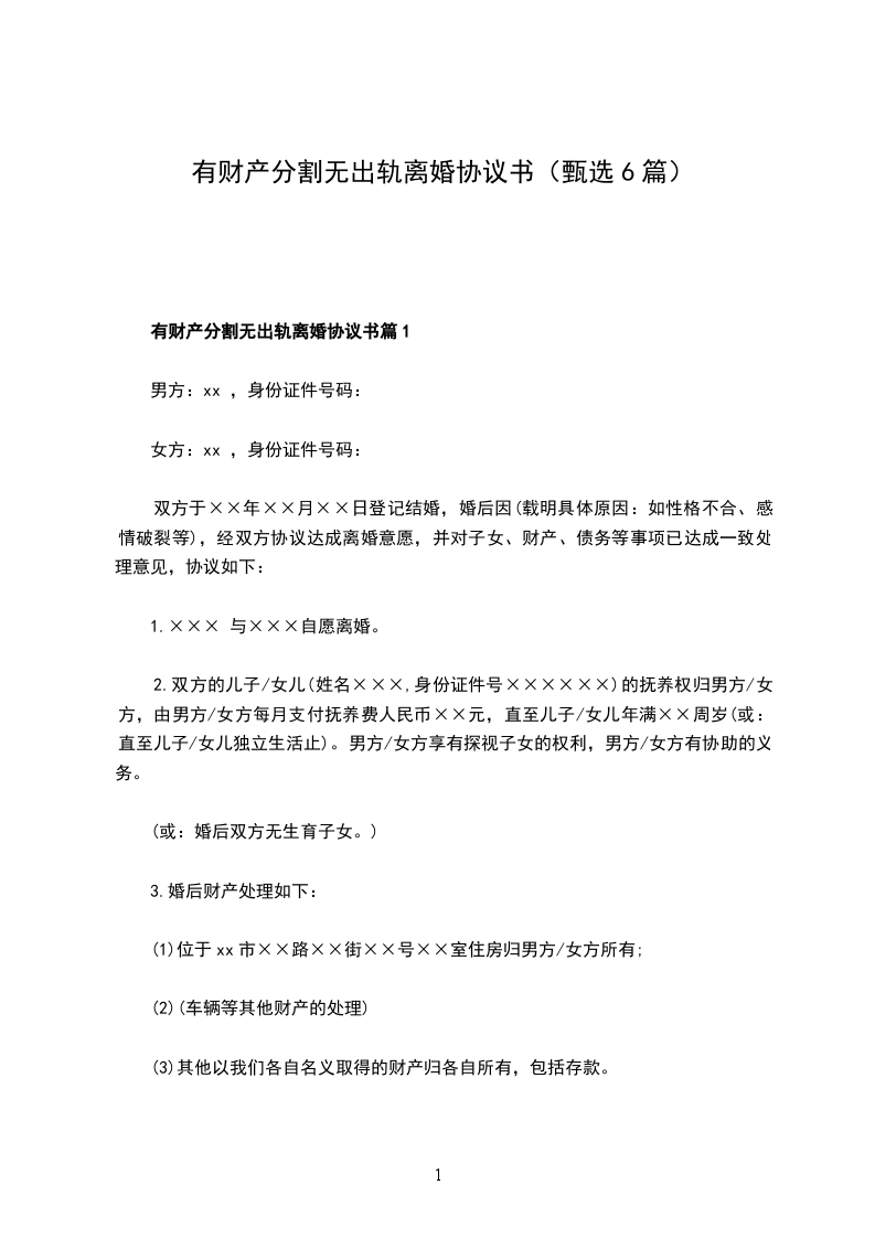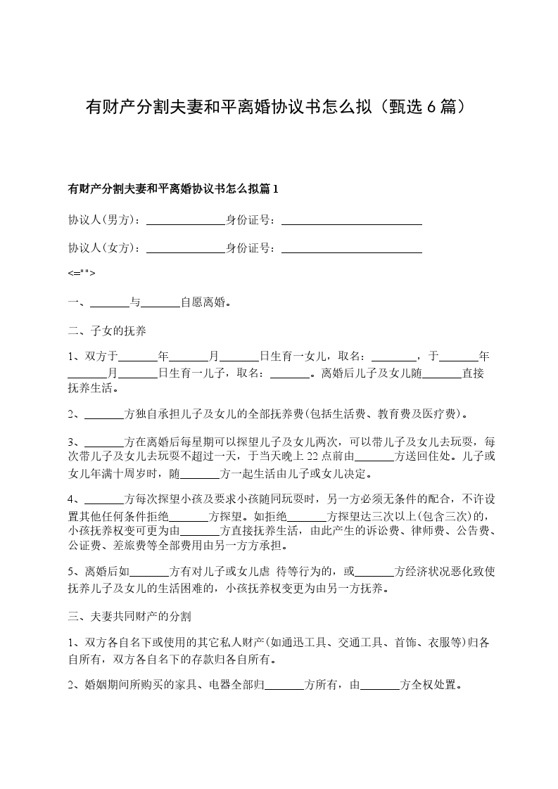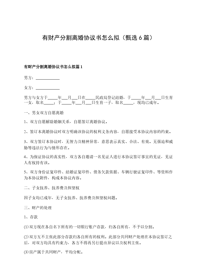 有财产分割离婚协议书怎么拟篇6