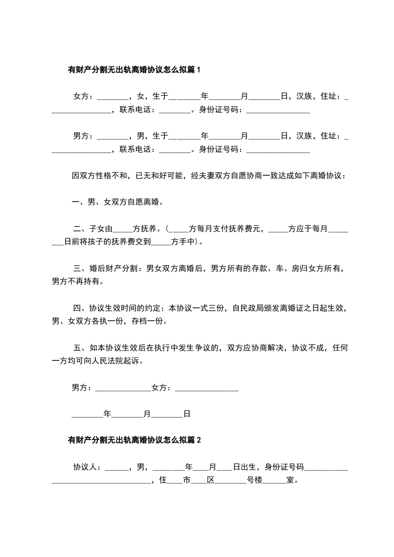 有财产分割离婚协议书怎么拟篇2