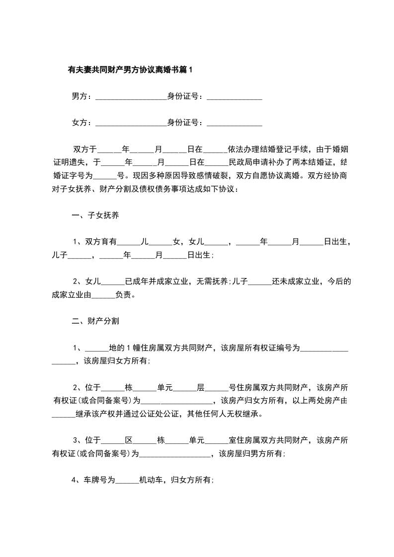 有夫妻共同财产男方协议离婚书篇5
