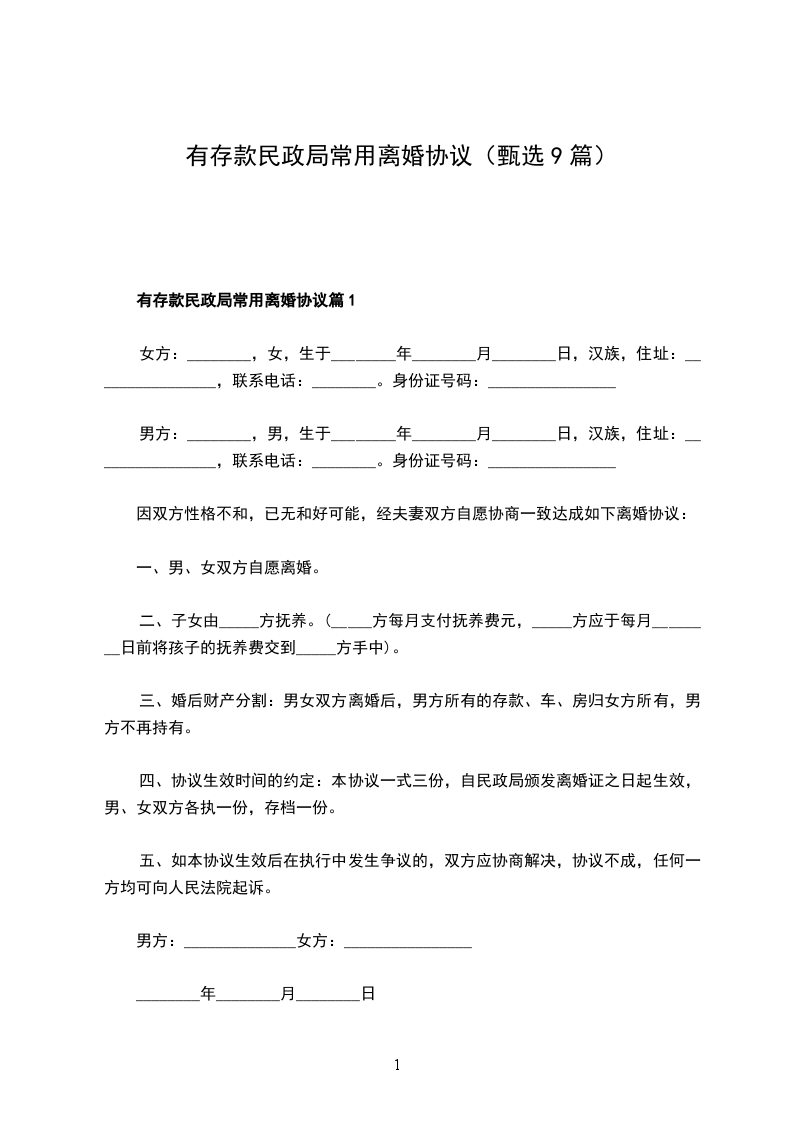 八、本协议一式三份,男、女双方各执一份,婚姻登记机关存档一份。