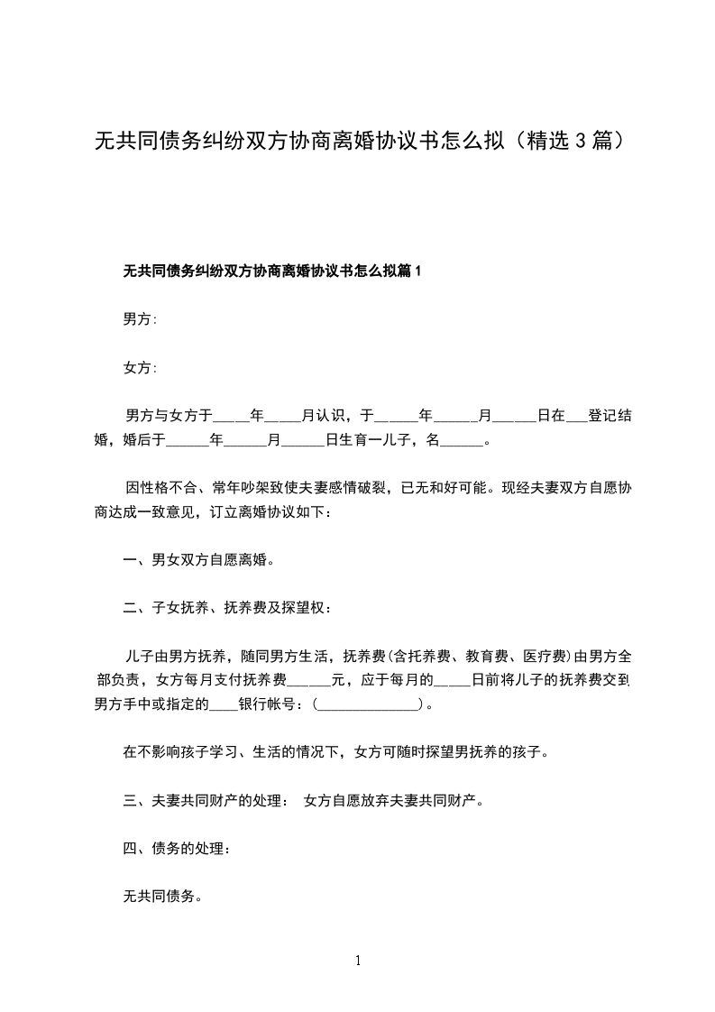 无共同的债权双方协商协议离婚书怎么拟篇1