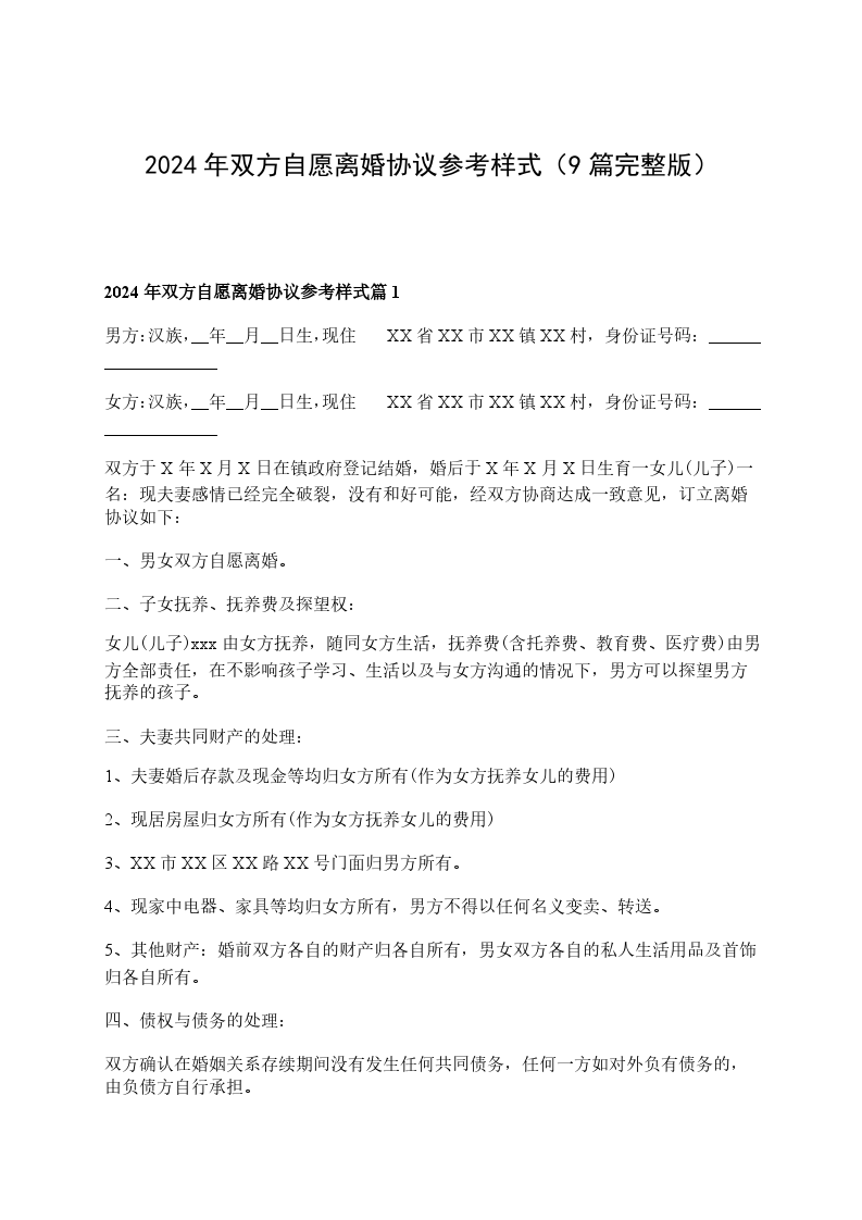 八、本协议一式三份,男、女双方各执一份,婚姻登记机关存档一份。
