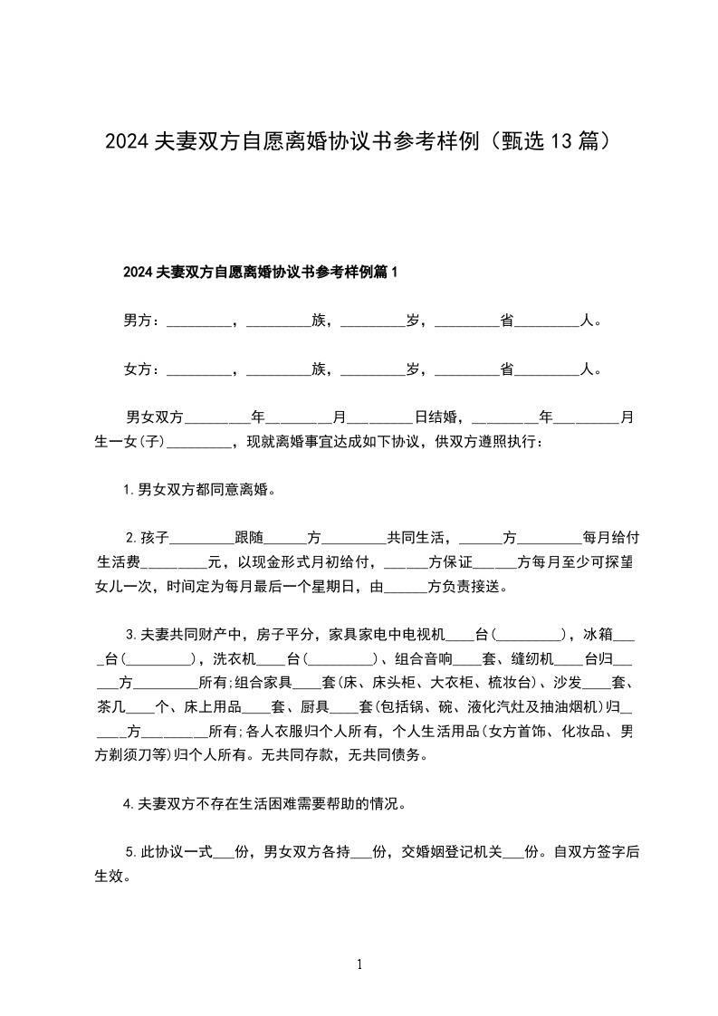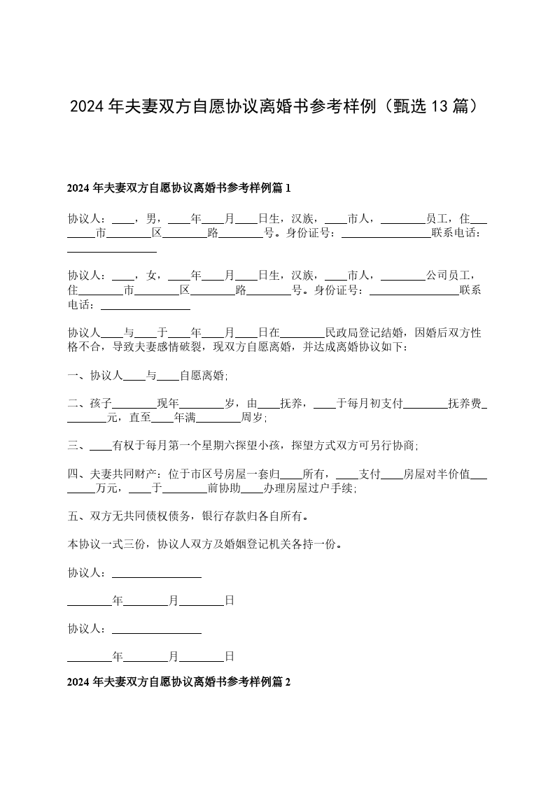 九、本协议一式三份,自婚姻登记处颁发离婚证之日起生效,男、女双方各执一份,婚姻登记机关存档一份。