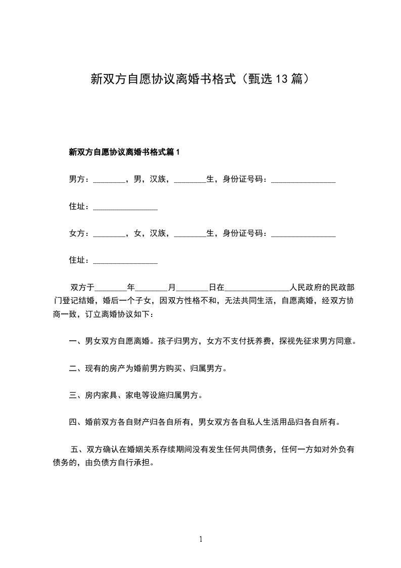 我们双方于_____年_____月_____日办理结婚登记,因婚后感情不和,现夫妻关系已彻底破裂,经反复冷静思考,我们自愿离婚,解除夫妻关系,经男女双方协商,一致达成如下离婚协议: