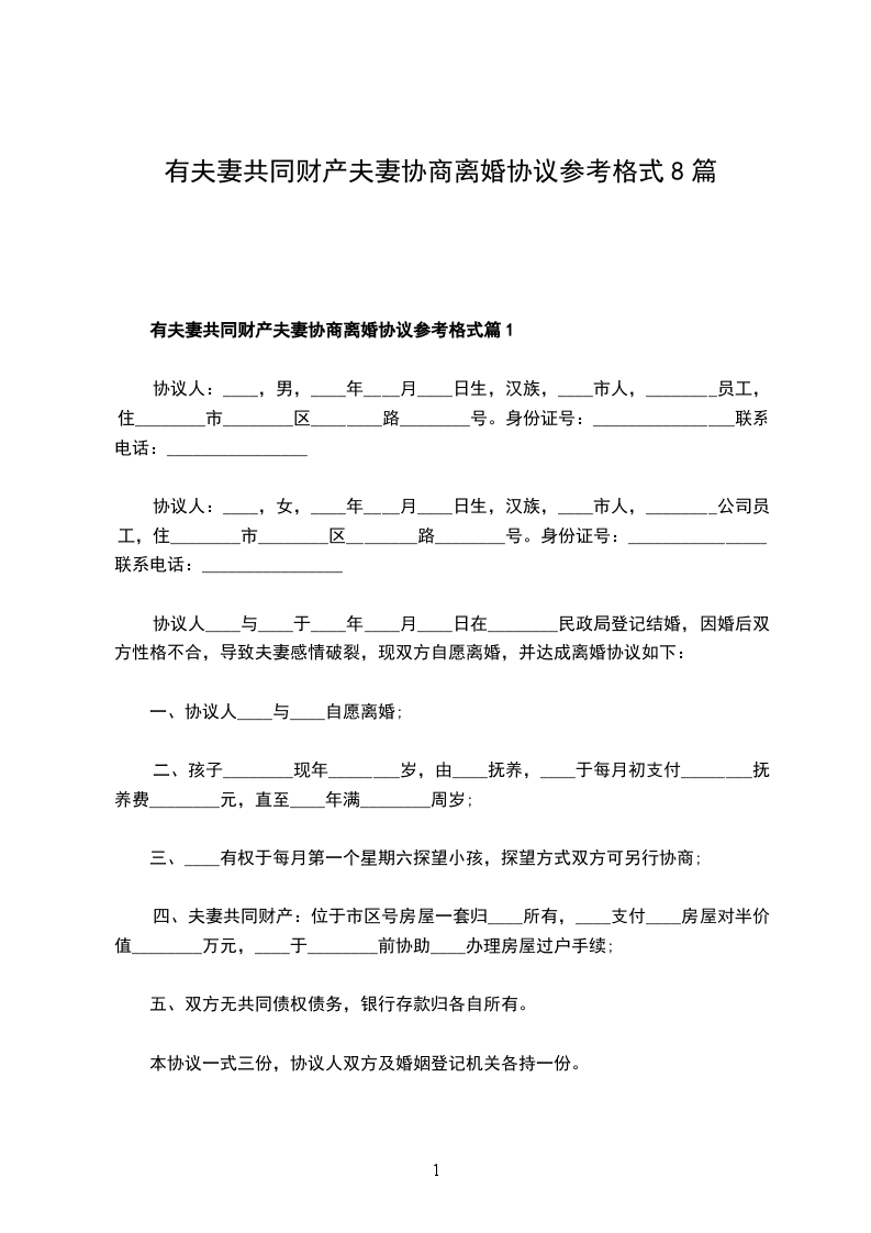 夫妻协商协议离婚范本参考格式篇8