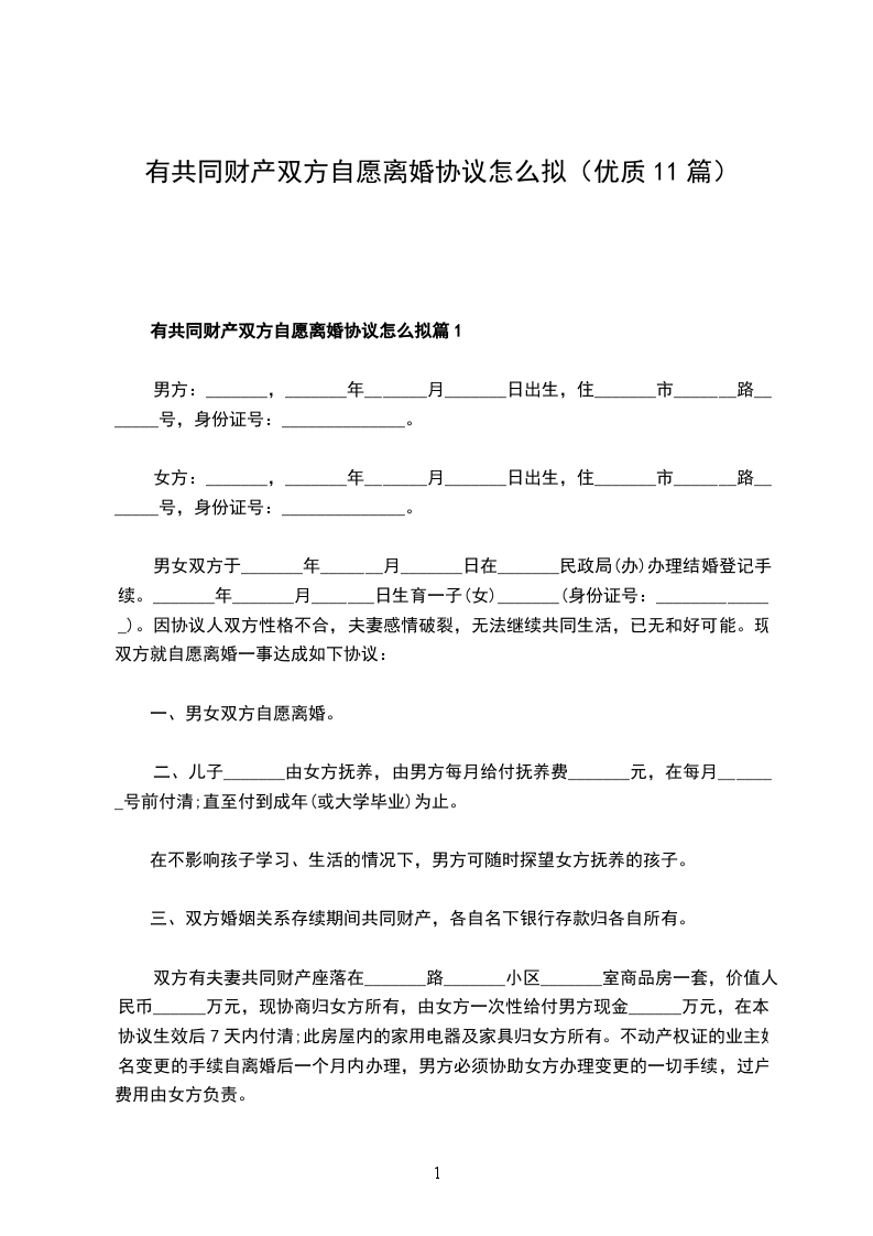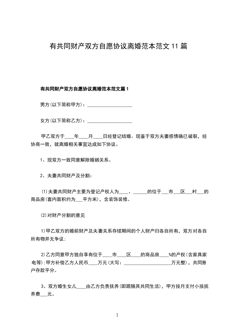 有共同财产双方自愿协议离婚范本范文篇11