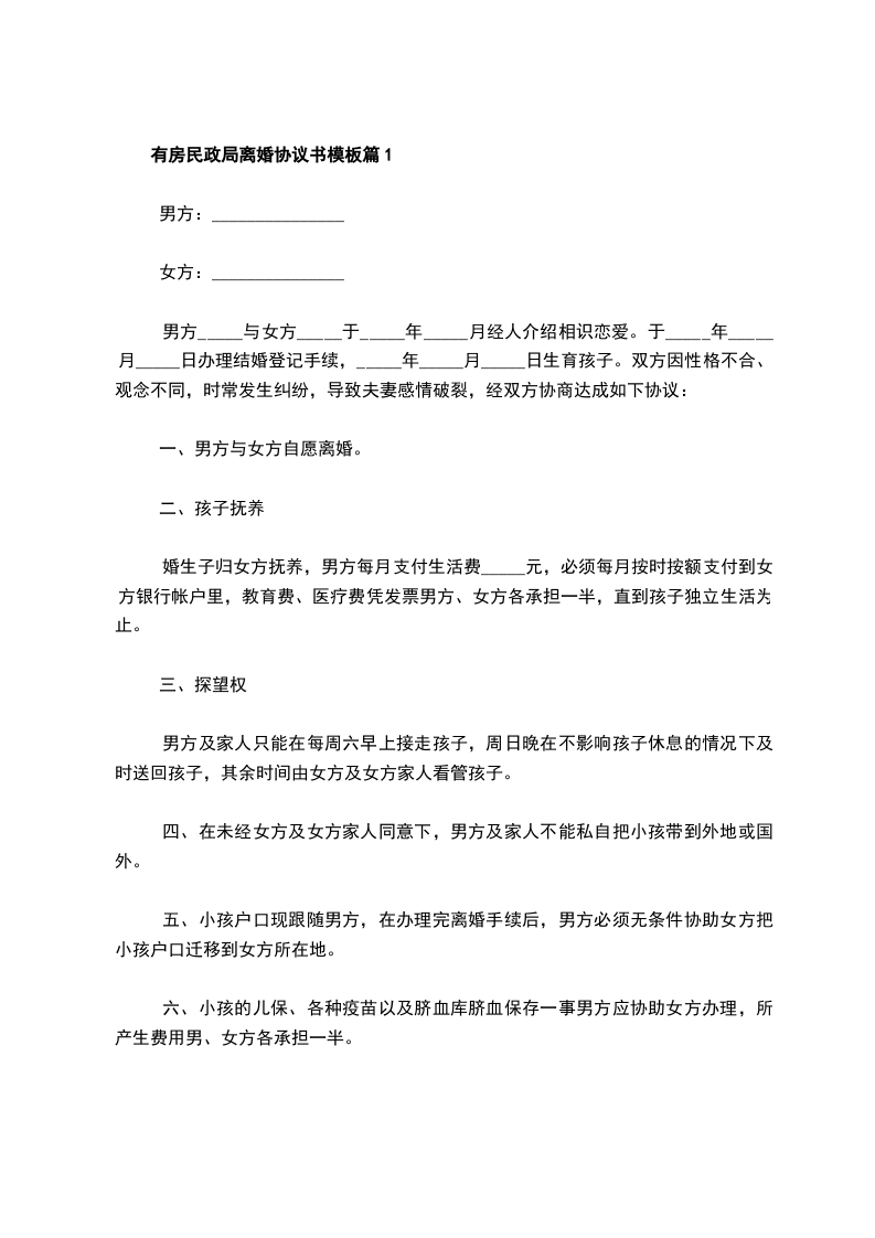 四、协议生效时间的约定:本协议一式三份,自机构颁发离婚证之日起生效,男、女双方各执一份,存档一份。
